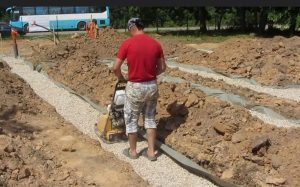 Что делать: В подготовленную траншею (для ленты), котлован (для плиты) или ямы (для столбов) засыпается слой песка (10-15 см), затем слой щебня (10-15 см). Каждый слой тщательно трамбуется виброплитой с проливкой водой.