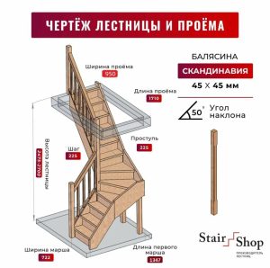 Угол наклона: Комфортный диапазон — 30–40°. Чем круче лестница, тем опаснее по ней ходить.