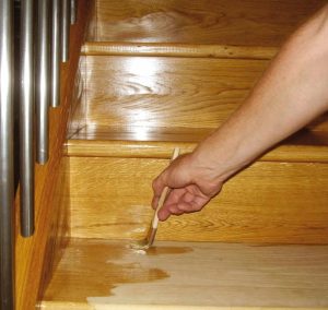 Удаление пыли: После шлифовки тщательно пропылесосьте лестницу и протрите все детали слегка влажной тряпкой. Любая оставшаяся пыль испортит качество нанесения покрытия.