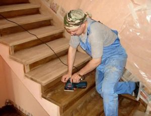 Шлифовка: Пройдитесь по всем поверхностям (ступеням, подступенкам, косоурам, балясинам, поручню) шлифовальной машинкой или вручную, последовательно меняя абразив от крупной (P80-120) до мелкой (P150-180) наждачной бумаги. Особое внимание уделите стыкам и торцам.