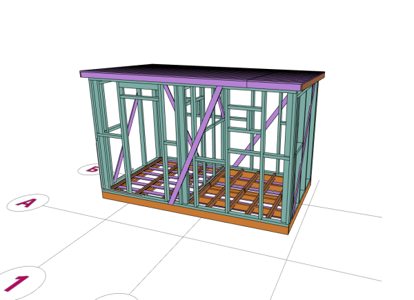 - Конструкторский раздел — чертежи всех стен, пола, стропильной системы, чертежи даны в порядке сборки баньки.