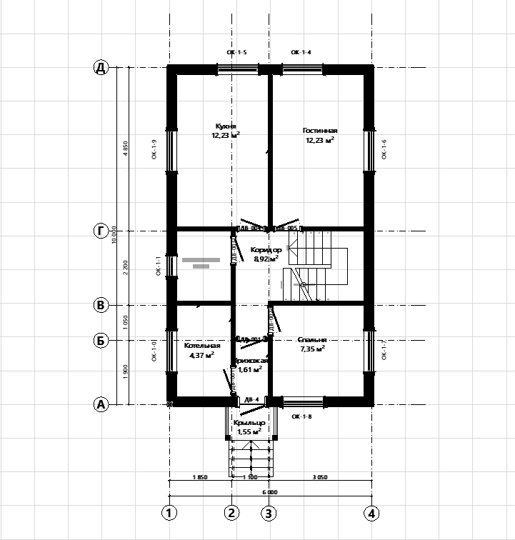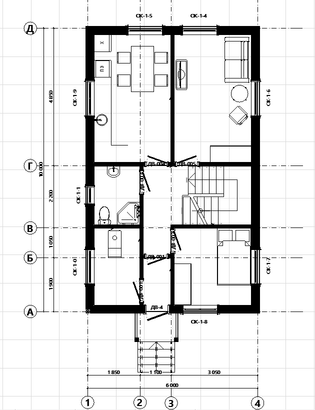 1. Габариты: Наружные размеры в осях — 6 x 10 метров.