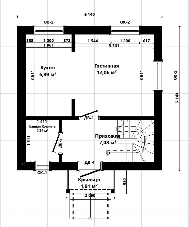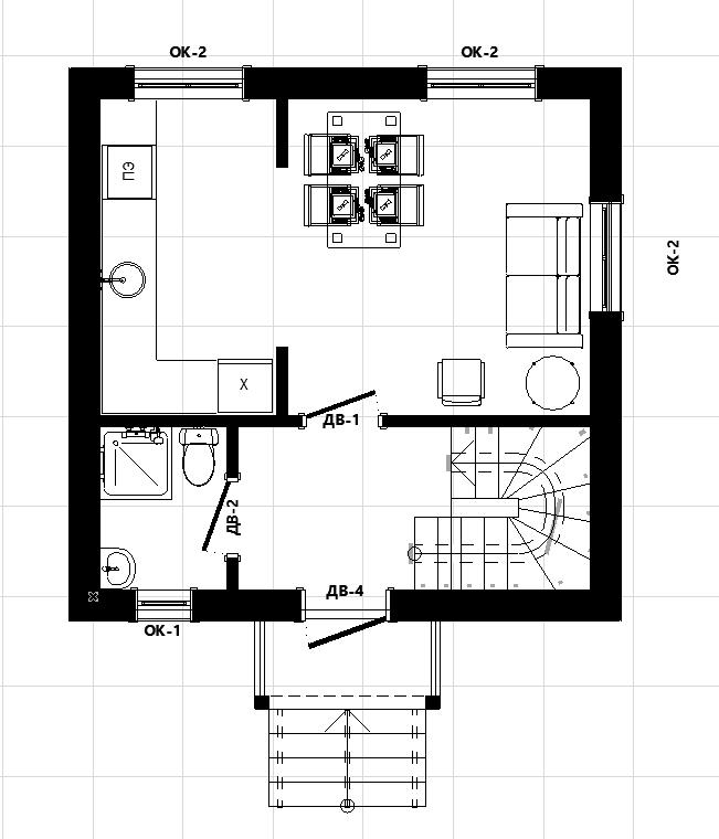Каркасный дом 6*7м «Клюква» — 1 этаж