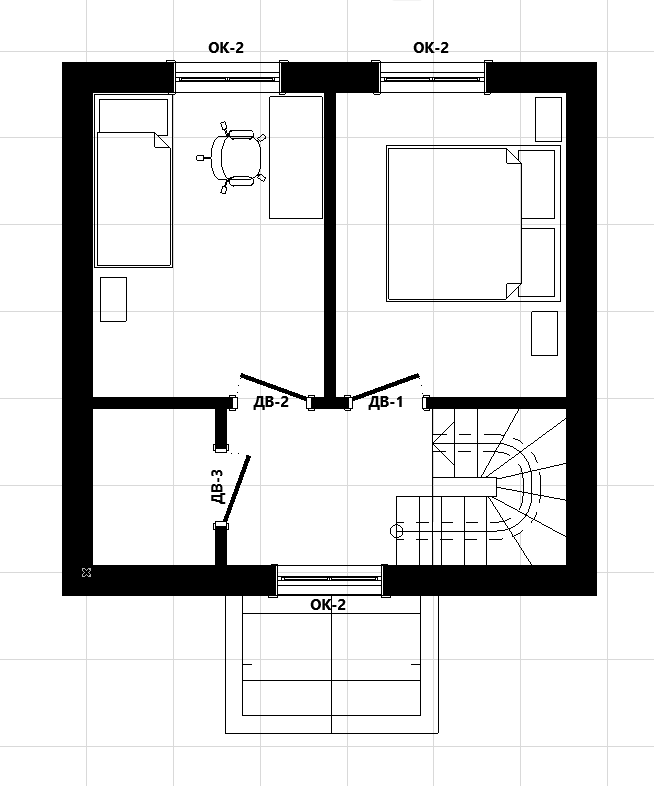 Планировка второго этажа (мансардный, общая площадь ~36 кв.м):