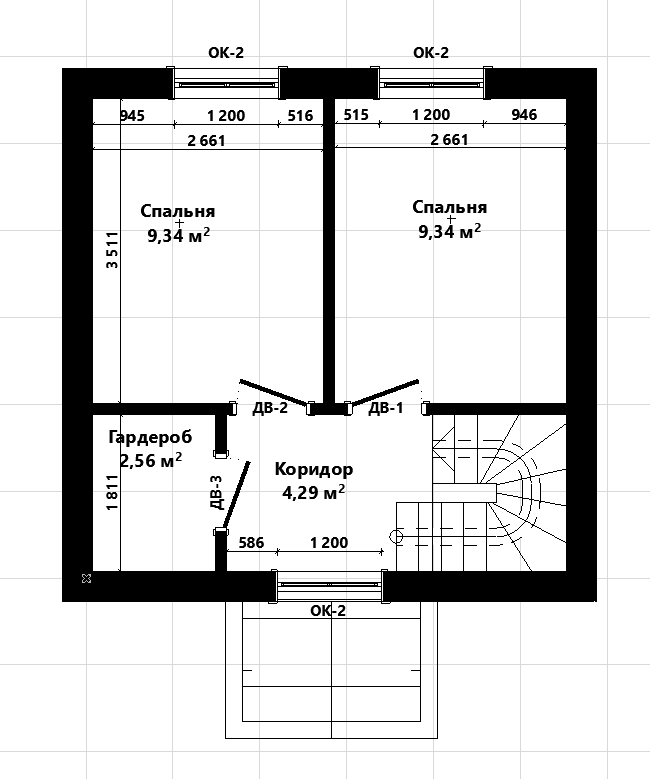 2. Спальня №1 (9,3 кв.м): Двуспальная или детская спальня с окном в скате кровли (мансардное).