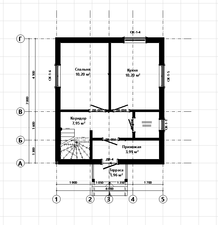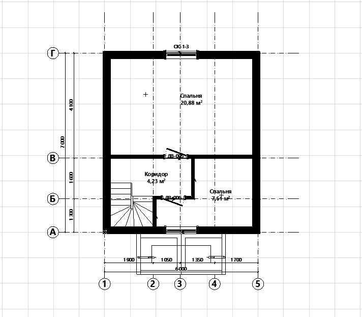 Наружные габариты (в осях): 6.0 x 7.0 м.