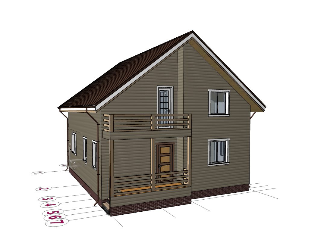 Каркасный дом 6*7 «Плёс» 2х-этажный