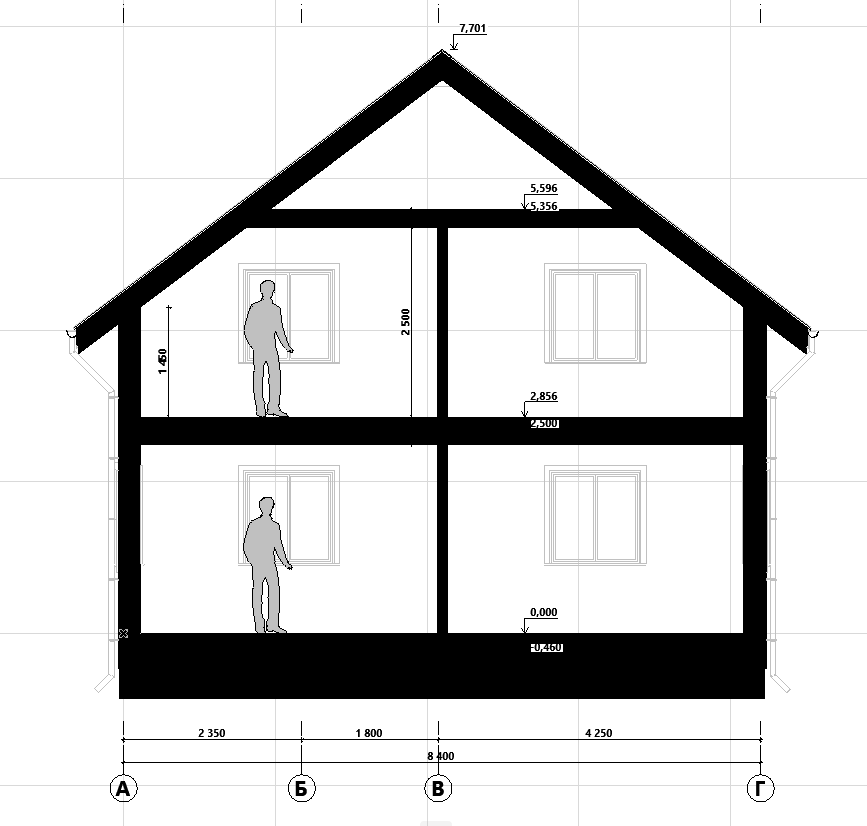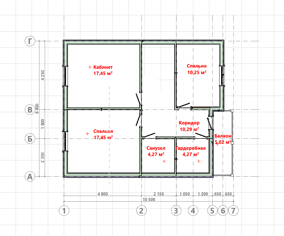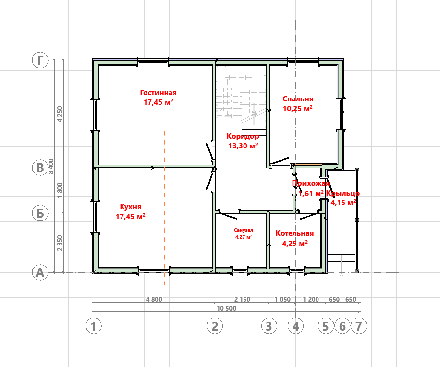 Наружные габариты: 8.4 м x 10 м (по осям стен).