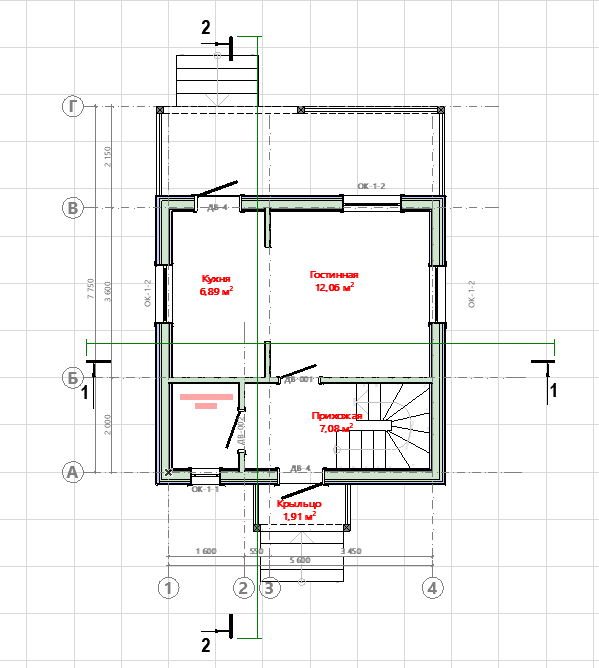 — Лестница: Одномаршевая, ведущая на второй этаж.