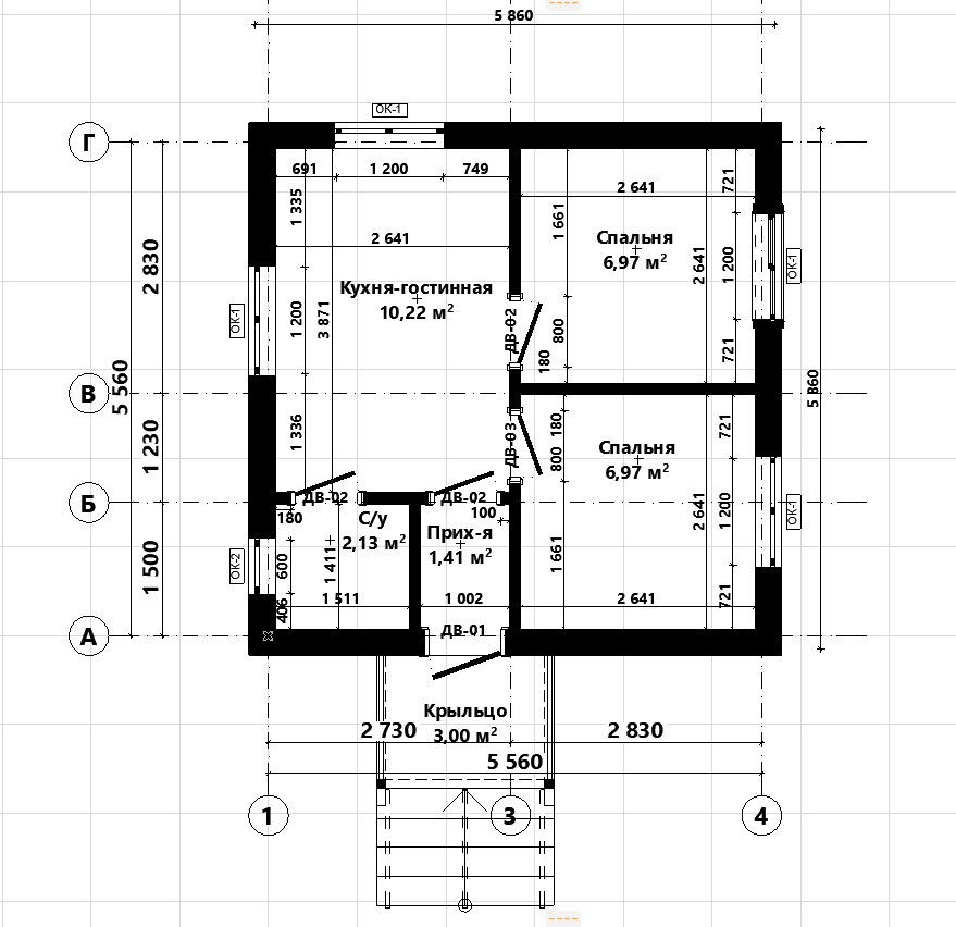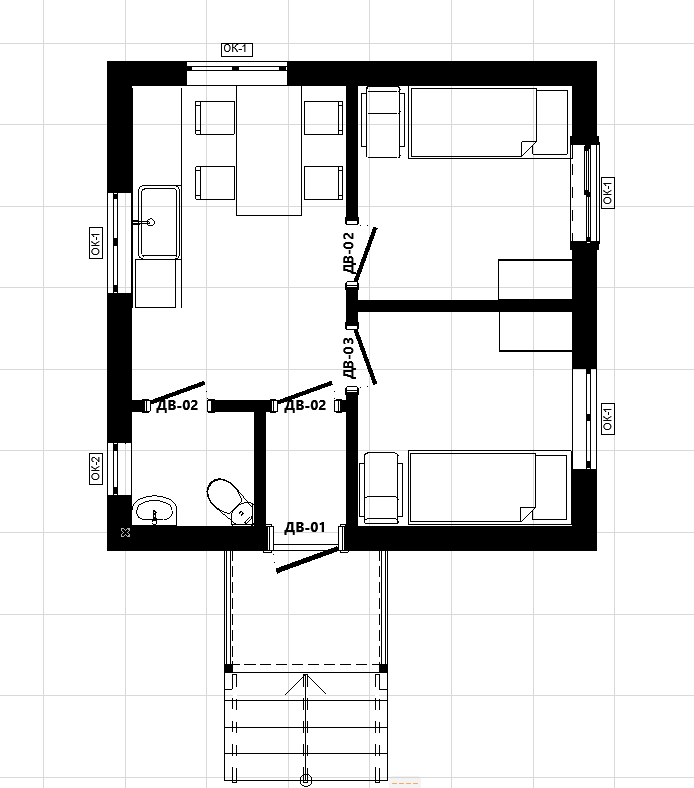 Проект дома 6м х 6м — «Вишня» — одноэтажный
