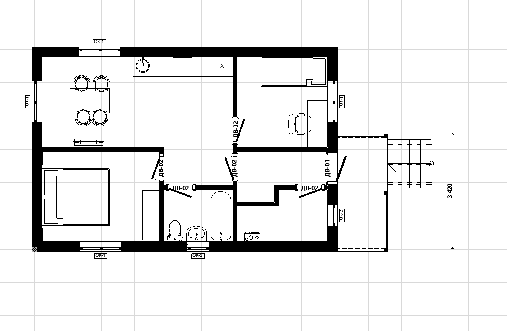 Проект каркасного дома 6*9м "Практик"