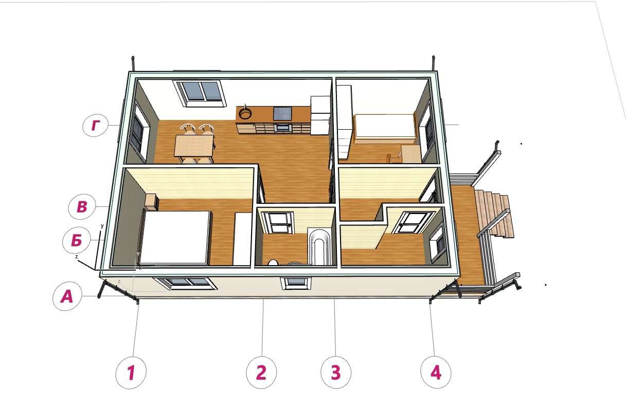 2. Экономия на фундаменте: Небольшая площадь и вес конструкции позволяют выбрать наиболее бюджетный тип фундамента.