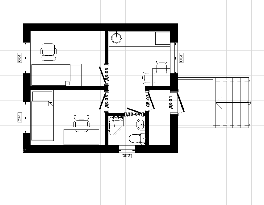 Каркасный дом 6*7м «Клюква» — 1 этаж