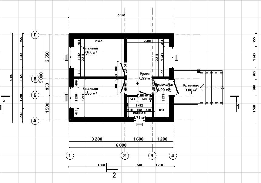 Наружные габариты: 6,0 м x 5,0 м. Площадь застройки: 30 кв.м.