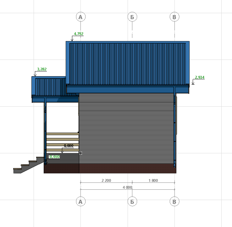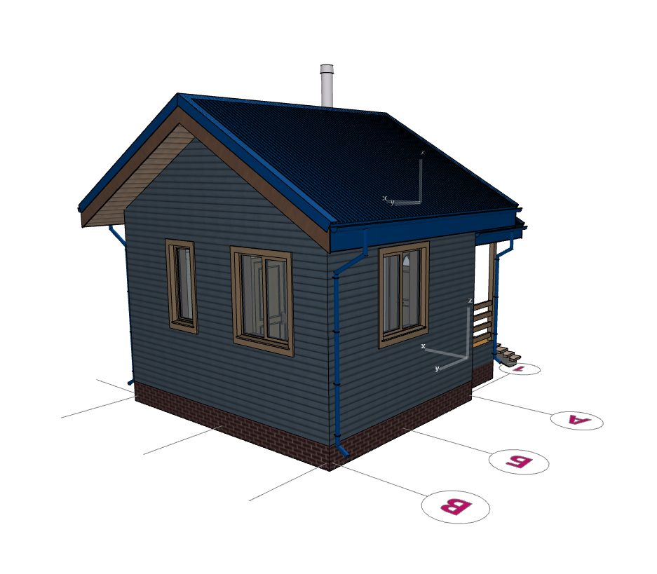 Внешние габариты (по стенам): 4 х 5 метров (площадь застройки 20 м²).